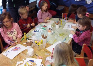 Im Anschluss an die Vorlesestunde konnten die Kleinen kreativ werden, hier in der Kita Dertingen. Foto: Stadtbücherei Wertheim