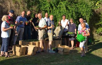 Bei einer „StadtGrün naturnah“-Aktion hat der Waldkindergarten Waldenhausen mit Oberbürgermeister Herrera Torrez „Samenbomben“ verteilt. Foto: Stadt Wertheim