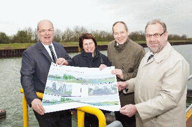 Bereits im April stellten Oberbürgermeister Thomas Hunsteger-Petermann, Stadtbaurätin Rita Schulze Böing, Peter Gawin (Leiter des Tiefbauamts der Stadt Hamm) und Stadtplanungsamt-Leiter Heinz-Martin Muhle die Pläne für den Brückenschlag vor.