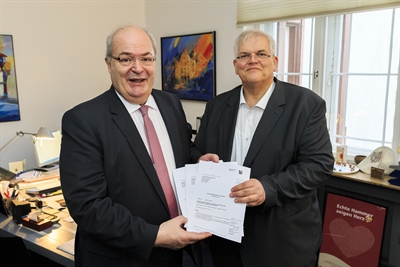 Der neue Arnsberger Regierungspräsident Hans-Josef Vogel übergab am Montagmorgen im Hammer Rathaus drei Bewilligungsbescheide an Oberbürgermeister Thomas Hunsteger-Petermann.