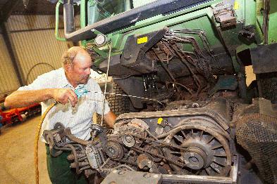 Die Pflege und Wartung des Fuhrparks und der Spezialmaschinen ist täglicher Bestandteil der Arbeit.