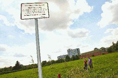 Die Gedenkstätte der Feuerkatastrophe In Bradford vor dem Rathaus.