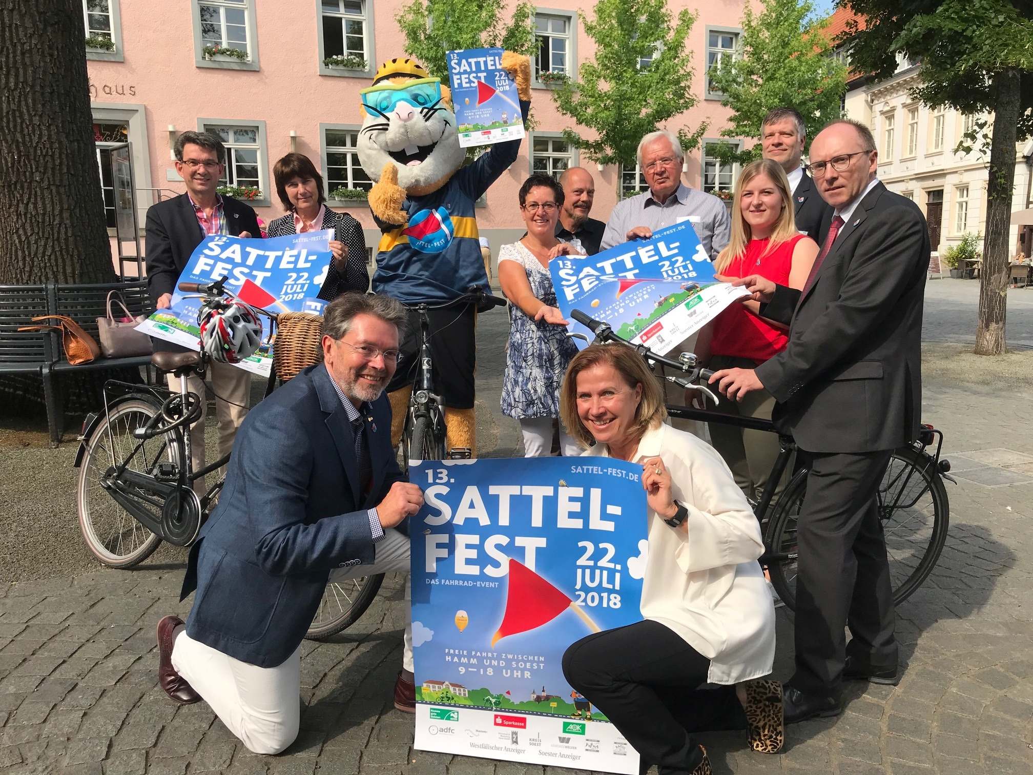 Goldsponsoren und beteiligte Kommunen animieren voller Vorfreude zum Mitradeln beim 14. Sattel-Fest – freie Fahrt für Radler zwischen Hamm und Soest