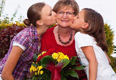 Ein dicker Kuss für Mutti: Karin Pieper darf sich zum Muttertag am Sonntag über Geschenke von ihren Töchtern Finja und Jantje freuen. Foto: Thorsten Hübner