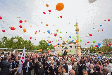 Rund 300 Bürgerinnen und Bürger ließen Mittwochabend im Rahmen der Kundgebung gegen Extremismus auf dem Gelände der Yunus-Emre-Moschee hunderte bunter Luftballons in den Himmel steigen – als sichtbares Zeichen für gelebte Solidarität und ein buntes, multikulturelles Hamm. (Foto: Thorsten Hübner)