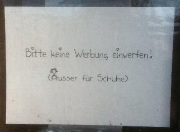 Eindeutige Vorliebe: Dieses individuelle Verbotsschild hängt in der Blumenstraße. Foto: B. Maßmann