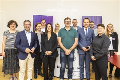 Auf dem Foto befinden sich Vertreterinnen und Vertreter der neu ausgezeichneten "Echte Hammer Betriebe" sowie der Partner