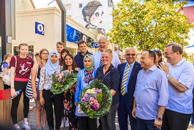 Einweihung eines Wandgemäldes in der Fußgängerzone