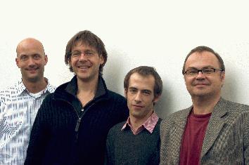 Kämmerer Markus Kreuz (v.r.), Personalchef Bernd Maßmann (v.l.) und Ausbildungsleiter Roman Quenter (h.r.) freuen sich mit den Rettungsassistenten