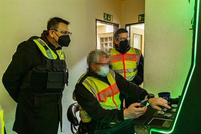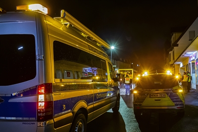 Polizeipräsident Thomas Kubera (links) und Oberbürgermeister Marc Herter (rechts) begleiteten die Kontrolle am Freitagabend.