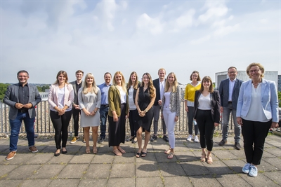 Auf dem Foto befinden sich Vertreterinnen und Vertreter der neu ausgezeichneten "Echte Hammer Betriebe" sowie der Partner