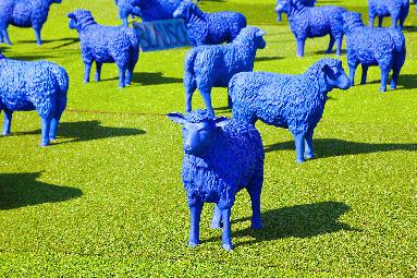 Künstlerin Bertamaria Reetz, Oberbürgermeister Thomas Hunsteger-Petermann, Künstler Rainer Bonk: Übergabe eines "Blauschafes" an die Stadt Hamm