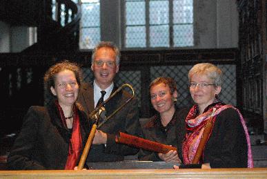v. l.: Sabine Stahl (obere Schulaufsicht der Grundschulen), Dr. Britta Obszerninks (Bildungsdezernentin), Susanne Wessels (untere Schulaufsicht der Grundschulen), Prof. Dr. Gerd Mannhaupt (Universität Erfurt)