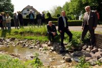 Den neugestalteten Gewässerabschnitt auf dem Gelände des Niederrheinischen Freilichtmuseums übergeben Niersverband-Vorstand Professor Dietmar Schitthelm, Landrat Peter Ottmann und Kulturdezernent Dr. Andreas Coenen (v.r.) seiner Bestimmung. Foto: Friedhelm Reimann / Abdruck honorarfrei