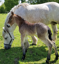 Mutter Nora und ihr Fohlen sind wohlauf. Die Besucher des Niederrheinischen Freilichtmuseums können sich an der Namenssuche beteiligen. Foto: Niederrheinisches Freilichtmuseum / Abdruck honorarfrei
