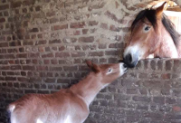 Kaltblutfohlen Antonia ist im Niederrheinischen Freilichtmuseum des Kreises Viersen geboren. Hier ist sie im Stall mit Fiona. Foto: Niederrheinisches Freilichtmuseum / Abdruck honorarfrei