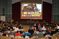 Interessiert lauschen die Schüler dem Vortrag von Professor Dr. Gideon Greif. Der israelische Wissenschaftler forscht zum Holocaust, insbesondere zum ehemaligen Konzentrationslager Auschwitz-Birkenau. Die Schüler machen eine Gedenkstättenfahrt dorthin. Foto: Berufskolleg Viersen / Abdruck honorarfrei