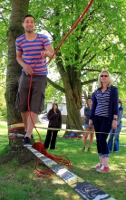 Auf der Slackline ist Körperwahrnehmung und Geschicklichkeit gefragt. Wie dieser junge Mann können die Besucher beim Fest der Generationen die neue Trendsportart ausprobieren. Foto: Franz Busch / Abdruck honorarfrei