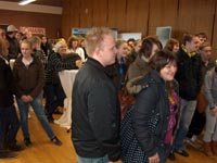 Auch im Foyer der Kreis-VHS in Viersen stößt die Wanderausstellung "40 Jahre Kreis Viersen" auf rege Resonanz. Foto: Axel Küppers / Abdruck honorarfrei