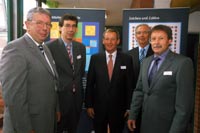 Feierten gemeinsam das 50-jährige Bestehen des Abendgymnasiums des Kreises Viersen: Schuldezernent Prof. Dr. Leo Peters, Günter Winands, Staatssekretär im Ministerium für Schule und Weiterbildung, Landrat Peter Ottmann, Dr. Theo Optendrenk, Vorsitzender des Schulausschusses und Schulleiter Karl-Heinz Loch (von links). Foto: Horst Siemes/Kreis Viersen - Abdruck honorarfrei