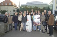 Abfahrt nach Kanew: Gemeinsam mit Fritz Meies (rechts), Vorsitzender der "Freunde von Kanew", reisen zwei Ensembles der Kreismusikschule Viersen und die Musikguppe "Viersen live" zu den Kulturtagen in die Ukraine. Bernhard Kloeters, Leiter der Kreismusikschule (2. von links), verabschiedet seine Musikschüler. Foto: Horst Siemes/Kreis Viersen - Abdruck honorarfrei