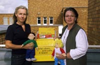 Beate Guse von der Aids-Beratung des Kreises Viersen (links) und Birgit Kruse von der Schwangerschaftskonfliktberatung donum vitae präsentieren die Kindergartenbox der Bundeszentrale für gesundheitliche Aufklärung (BzgA). Foto: Horst Siemes/Kreis Viersen - Abdruck honorarfrei