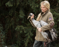 Der Kranich hat sich an einer Schlagfalle verletzt und beide Füße verloren. Das Tier musste eingeschläfert werden. Foto: Frank Seifert / Abdruck honorarfrei