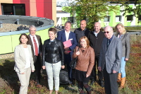 Haben sich bei ihrem Rundgang durch die Dependance des Rhein-Maas-Berufskollegs in Willich sogar das begrünte Dach angeschaut: (v.l.) Schulleiterin Elke Terbeck, Schulamtsleiter Lothar Thorissen, Mirjana Kovačić, Gebäude-Management-Architekt Herbert Verlinden, Cuong Vu (RMBK), Ana Maeketin-Sedlar, Davor Savić, Erwin Bauschmann (RMBK), Standortleiterin Annett Richter (RMBK).