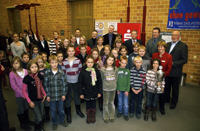 Ehrung der Teilnehmer Aktion Laufabzeichen und Sportabzeichen 2008 im Forum des Kreishauses. Ena Hentschel (rechts) von der Katholischen Grundschule Lobberich trägt den Wanderpokal für den Sieger des „Rolf Richter Gedächtnispreis“. Foto: Horst Siemes/Kreis Viersen - Abdruck honorarfrei