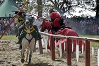 Das Ringstechen gehört zu den zahlreichen Programmpunkten im Niederrheinischen Freilichtmuseum in Grefrath. Foto: Horst Siemes/Kreis Viersen - Abdruck honorarfrei