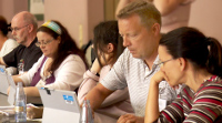 Die Teilnehmer der Regionaltagung Medien konnten in den Workshops an Tablets viele Tipps direkt ausprobieren. Foto: Kreis Viersen / Abdruck honorarfrei