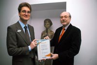 Jörg Papenkort, Leiter des Gebäudemanagements beim Kreis Viersen, nimmt in Berlin die Urkunde von "Bewährt vor Ort" entgegen.