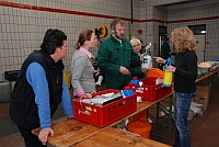 Im Logistikzentrum nehmen die Übungsteilnehmer Material in Empfang. Foto: Pressestelle Kreis Kleve - Abdruck honorarfrei