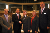 Grefraths Bürgermeister Herbert Kättner, Werksleiter Sungur Dertürk, Insolvenzverwalter Hans Dieter Mielke, Landrat Peter Ottmann und WFG-Geschäftsführer Rolf Adolphs (von links) im Gespräch. Foto: Alois Müller/Kreis Viersen - Abdruck honorarfrei