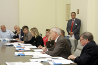 Wenn im Frühjahr der Brotkorb im Konferenzzimmer von Landrat Peter Ottmann (linke Reihe, 3.v.l.) duftet, steht der Austausch mit der Kreis Viersener Bauernschaft an. Foto: Friedhelm Reimann / Abdruck honorarfrei