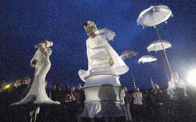 Verrückte Gestalten, Seiltänzer, Akrobaten: Die Künstler von "Les Tréteaux du Coeur Volant" verwandeln das Bagno in Steinfurt in eine Traumwelt.