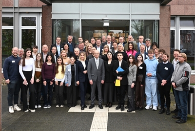 Von links: Landrat Dr. Martin Sommer (1. Reihe 3. v.l.), Kreisarchivarin Ute Langkamp und ihr Nachfolger Jannik Schröder gemeinsam mit den Mitgliedern des AKAST.