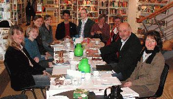 Die Jury diskutierte über jedes Projekt: Anne Rottmann (v.l., Mitglied des Schul-, Kultur- und Sportausschusses des Kreises Steinfurt), Kunsthistoriker Dr. Christoph Schneider, Bettina Roggmann von der Kulturstiftung Schloss Agathenburg, Dr. Peter Lüttmann, Sozial- und Kulturdezernent des Kreises Steinfurt, Gerd Andersen, Leiterin und Kuratorin des DA, Kunsthaus Kloster Gravenhorst und Barbara Thomas-Klosterkamp, Leiterin des Schul,- Kultur- und Sportamtes des Kreises Steinfurt.