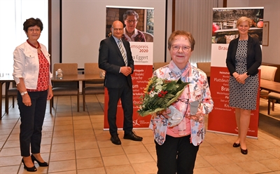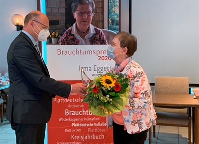 Im Ratssaal der Gemeinde überreichte Landrat Dr. Martin Sommer Brauchtumspreis des Kreises Steinfurt 2020 an die Westerkappelnerin Irma Eggert.