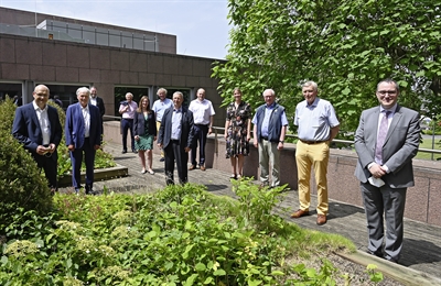Das Team hinter dem INTERREG-V-A WiEfm-Projekt mit Christian Rapien (5. v.r.) und Projektleiter Professor Christof Wetter (6. v.r.) präsentiert die neue Broschüre.