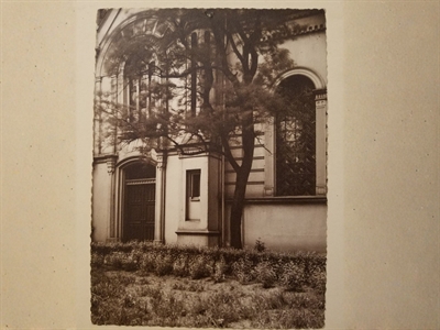 Das Foto zeigt die Außenfassade der jüdischen Synagoge an der Nobelstraße, so wie sie von einem unbekannten Fotografen am 6. Januar 1936 festgehalten wurde.