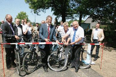 Die Kinder zerschneiden das Absperrband. Foto: Max Rolke – Kreis Unna