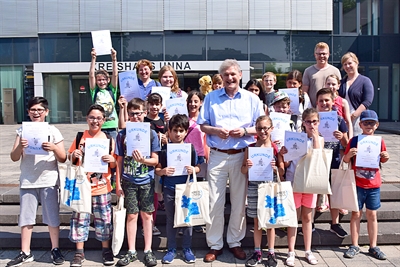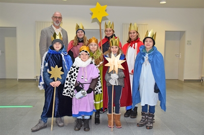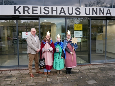 Kreisdirektor Mike-Sebastian Janke begrüßte die Sternsinger im Kreishaus und wünschte ihnen viel Erfolg bei ihrer Aktion. Foto: Leonie Bleimling - Kreis Unna