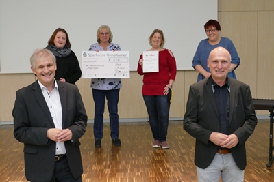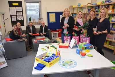 V. l. Sabine Kern (Kommunales Integrationszentrum), Sylke Schertel (Schulleiterin der Schule am Friedrichsborn) und Vera Michel (Schulleiterin der Grilloschule), nehmen die Spende von der Bürgerstiftung zum Jahresausklang an. Foto: Leonie Bleimling - Kreis Unna
