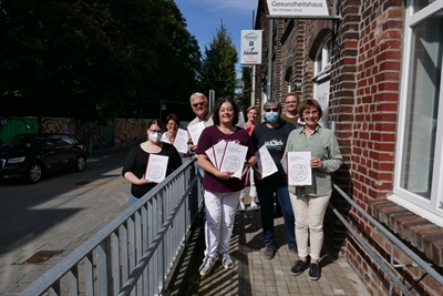 Das Team vom Sozialpsychiatrischen Dienst beim Aktionsabend für die Selbstfürsorge, mit v.l.o. Fine Kullmann, Katja Sträde, Ruth Brouwer, Aleksandar Stevic, Heike Stahlhut, Hendrik Gensemeyer.