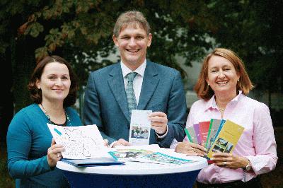 Stellvertretender Landrat Martin Wiggermann (l.) und Anja Josefowitz, Sprecherin des Bündnisses für Familie (M.) begrüßen die neue Geschäftsführerin Sandra Ruiz Herter (r.). Foto: Max Rolke – Kreis Unna