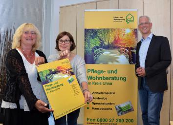 Sozialdezernent Torsten Göpfert (r.) stellte zusammen mit Iris Lehmann (l.) und Andrea Schulte den Jahresbericht der Pflege- und Wohnberatung im Kreis Unna vor. Foto: B. Kalle – Kreis Unna