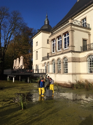 12 Skulpturen stehen im Park, Puccinellis „Sirena“ fand ihren Platz in der Gräfte von Haus Opherdicke. Foto: Arne Reimann - Kreis Unna