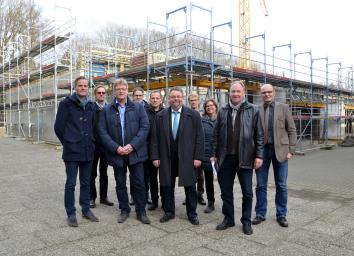 Ein Bild vom Stand des Sporthallen-Neubaus machten sich alle Beteiligten am Freiherr vom Stein-Berufskolleg in Werne. Foto: B. Kalle – Kreis Unna