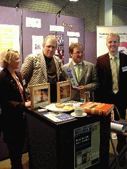 Auch Integrationsminister Armin Laschet gehörte zu den Besuchern des Steinfurter Gemeinschaftsstandes, mit im Bild v.l.: Elke Zeitner (Caritas Rheine), Dr. Peter Krevert (Koordinator der OPTIMIST-Projekte) und Thomas Ostholthoff (Ausländerbehörde des Kreises Steinfurt).